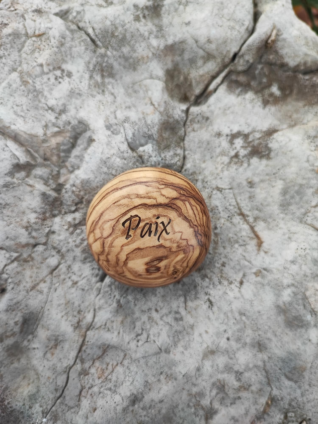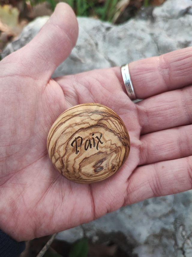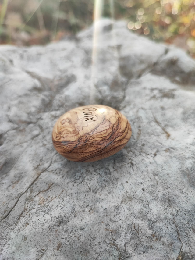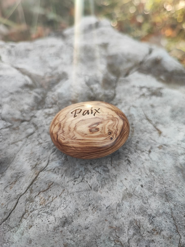 Caillou en Bois d'Olivier "Paix"