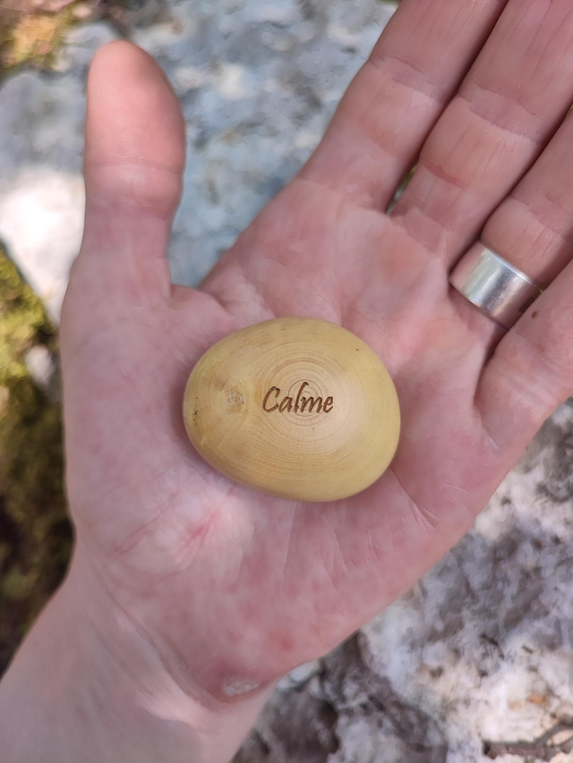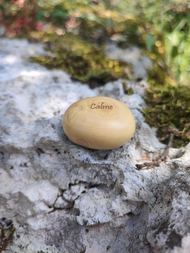 Gravure Laser "Calme" (en rapport avec les vertus du bois).