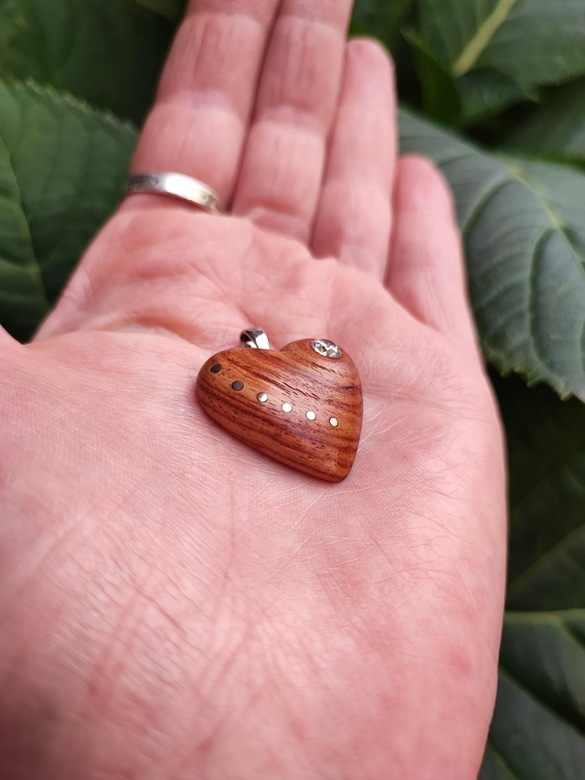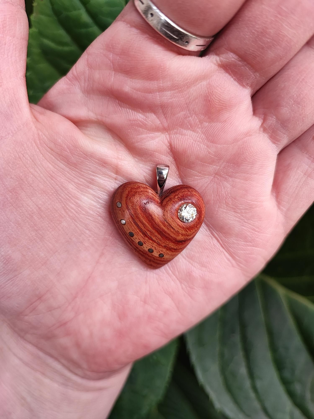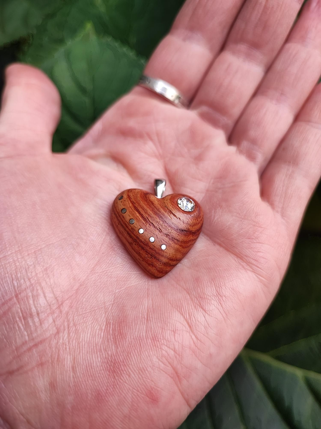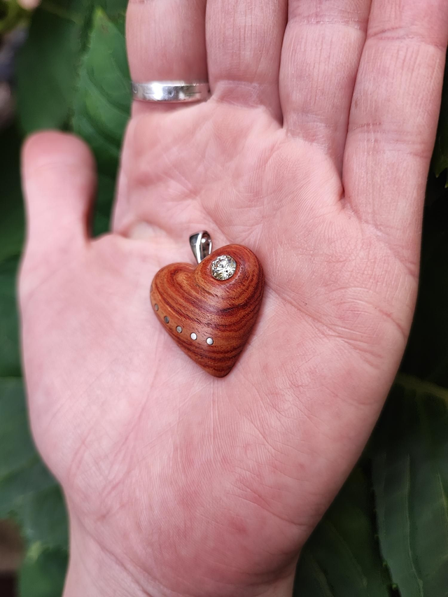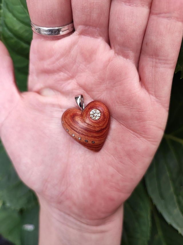 Pendentif Coeur en Bois de Rose, Oxyde de Zirconium et Argent