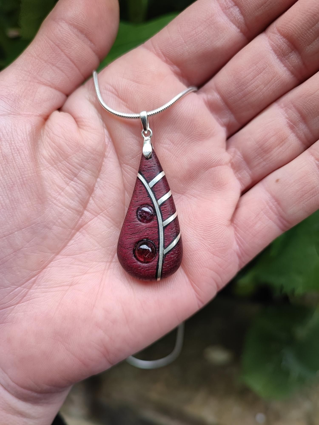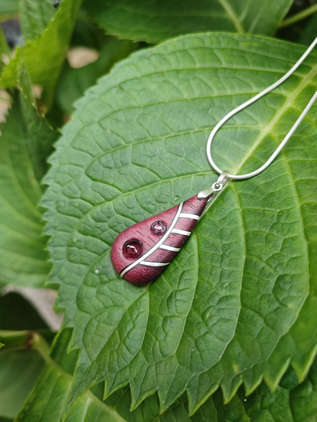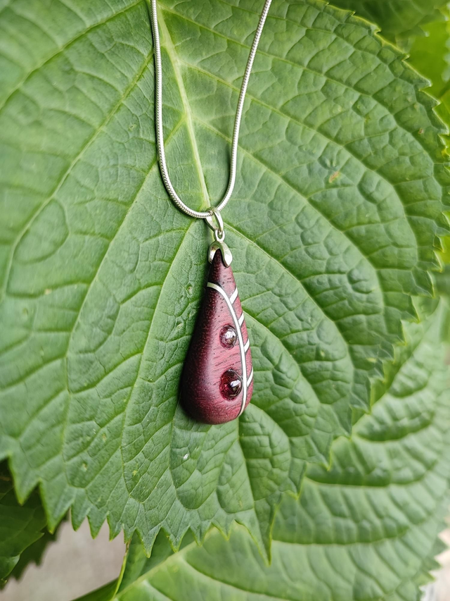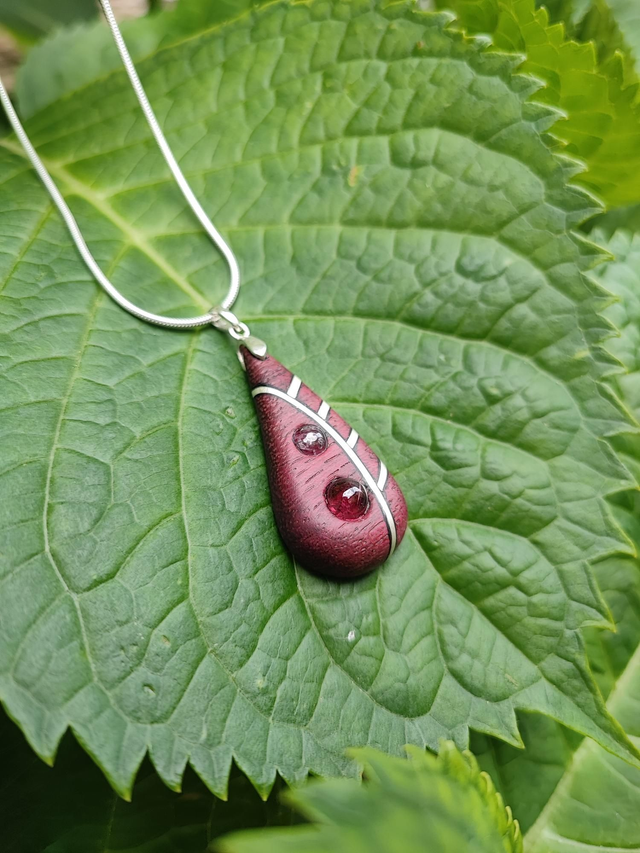 Pendentif en Bois d'Amarante, Grenats Rhodolites et Argent