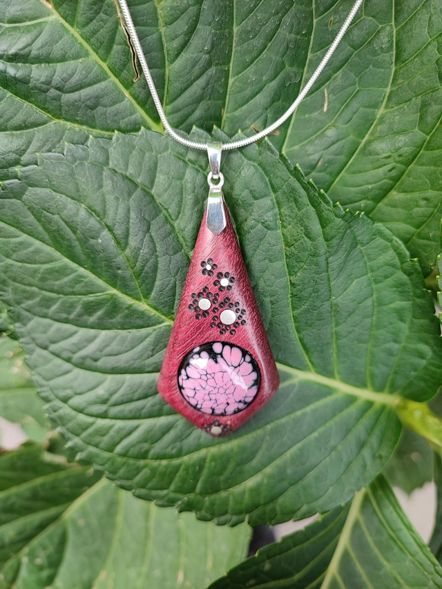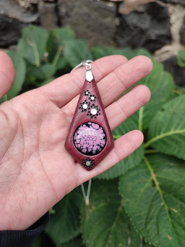 Ce pendentif en bois d'Amarante se distingue par sa teinte violette naturelle et son énergie douce, associée aux vertus d'apaisement et d'inspiration. En son centre, une pièce en verre filé au chalumeau, façonnée par une artisane, ajoute une touche de lumière et de profondeur à l'ensemble. Ce contraste entre le bois noble et le verre travaillé crée un Bijou unique, à la fois harmonieux et captivant, où chaque détail témoigne de l’alliance entre la nature et l’artisanat.