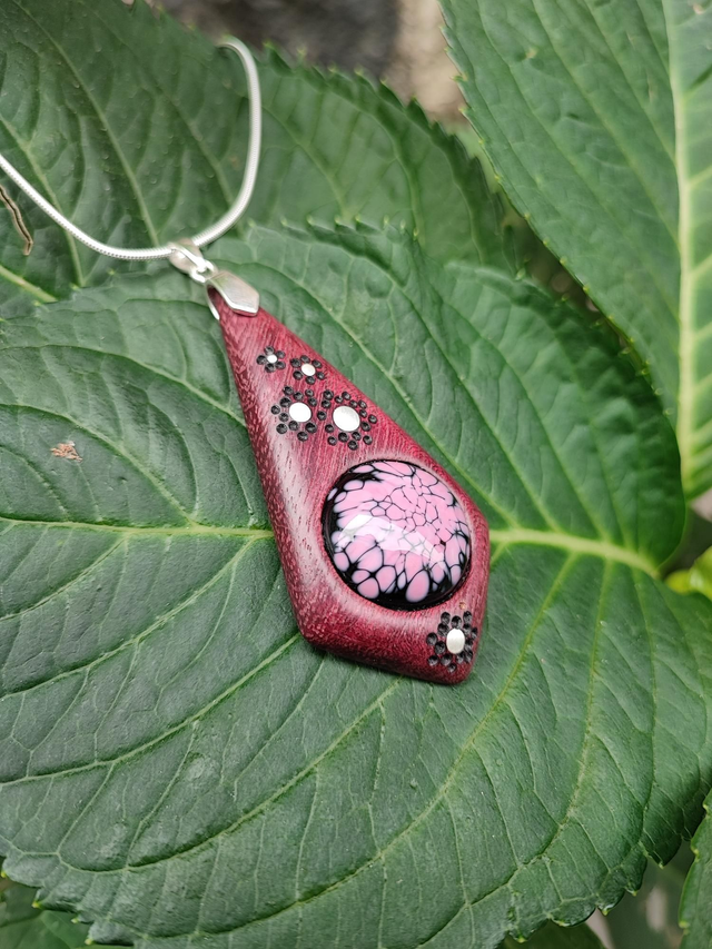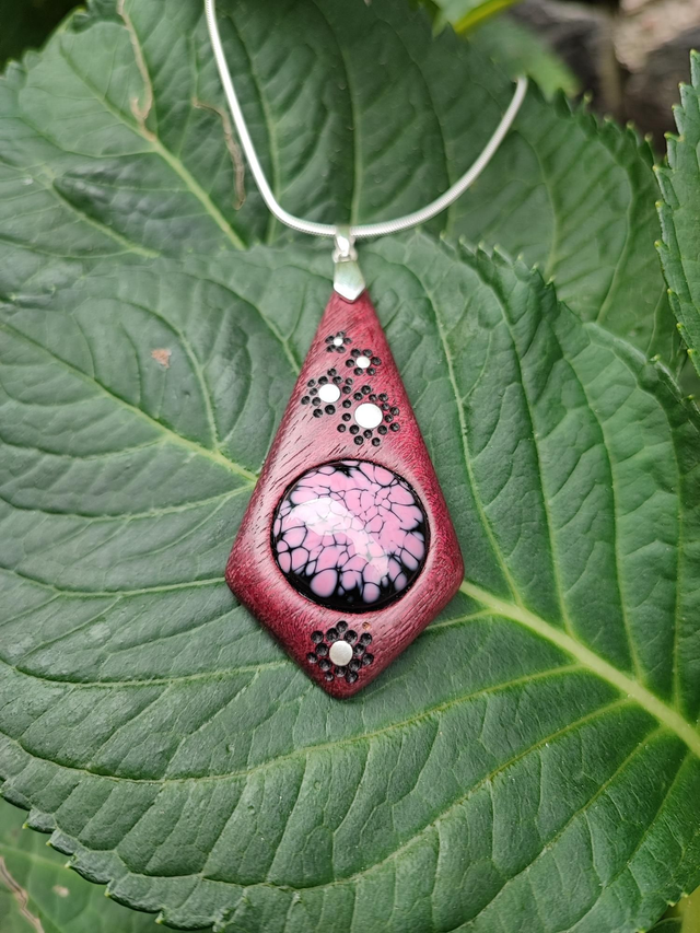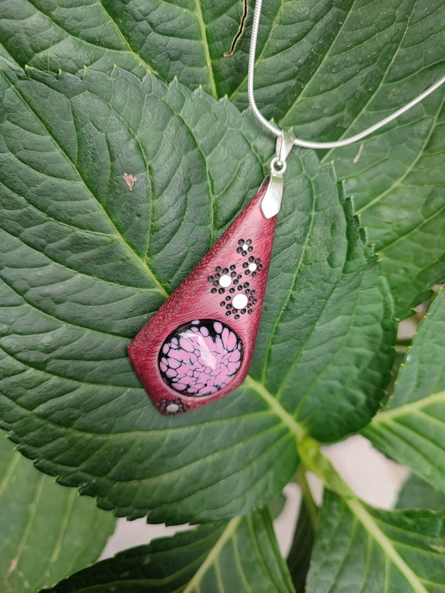 Pendentif en Bois d'Amarante, Verre filé et Argent