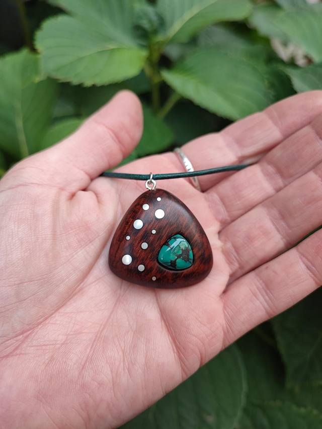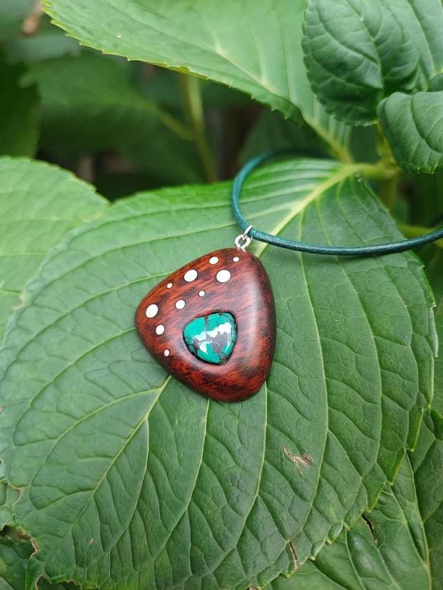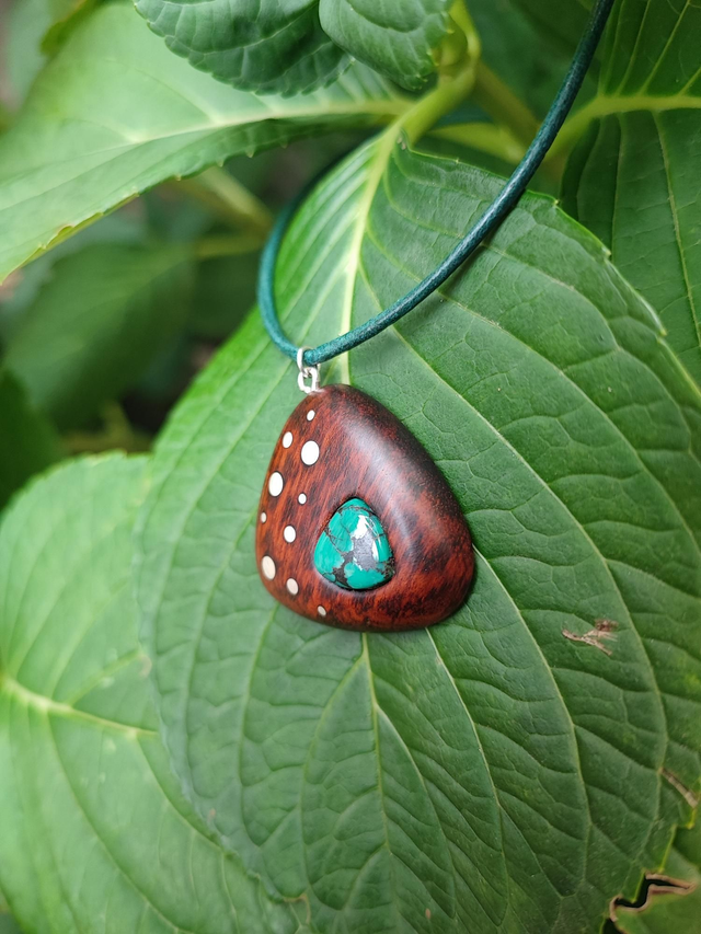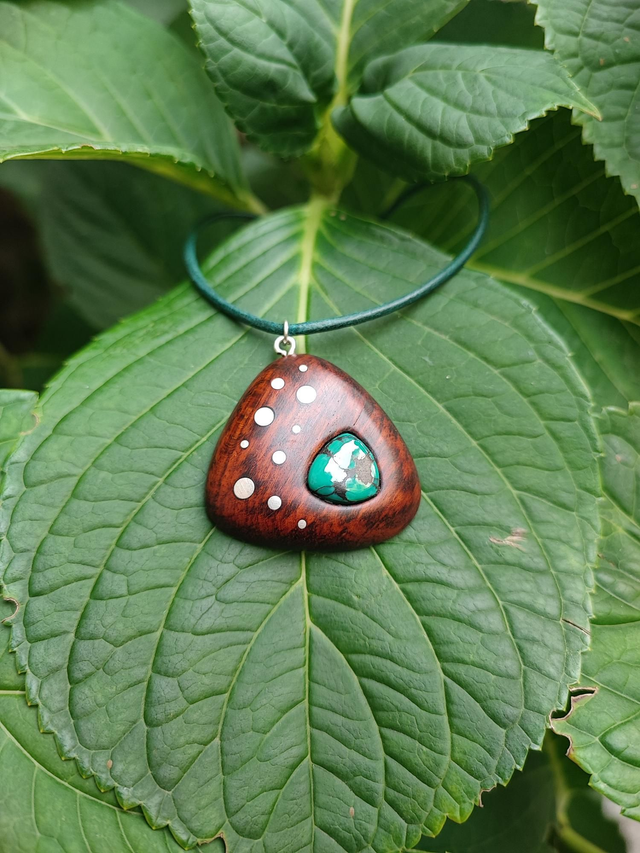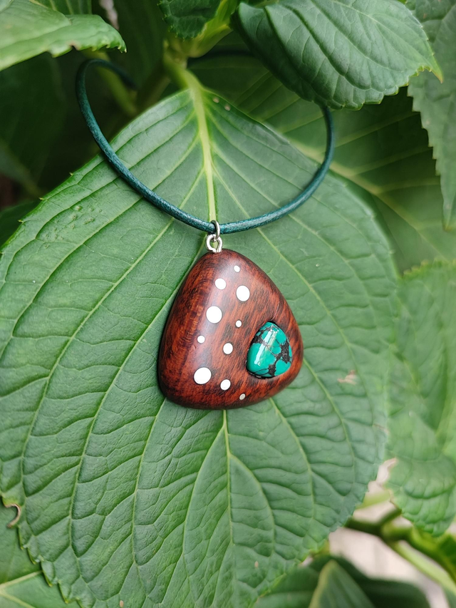 Pendentif en Bois d'Amourette, Turquoise et Cordon Cuir