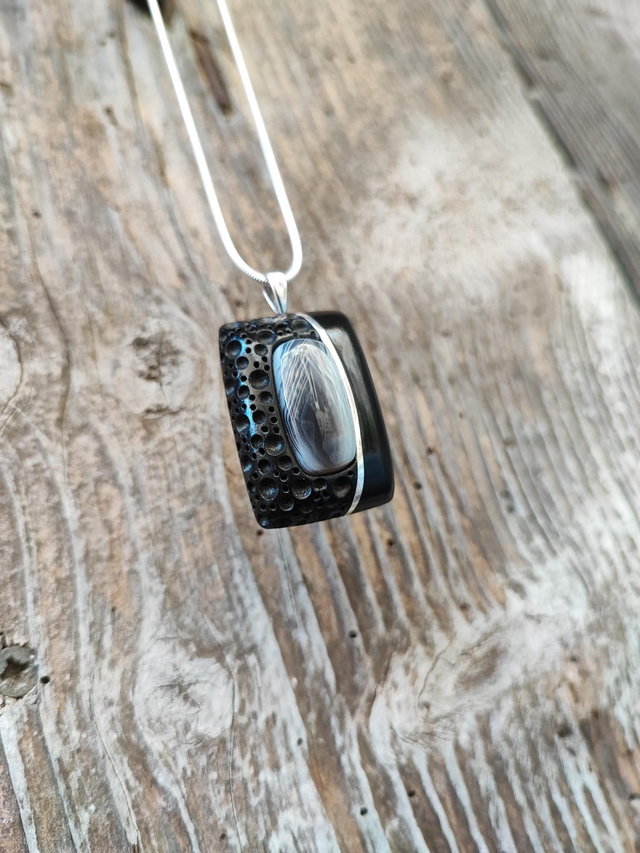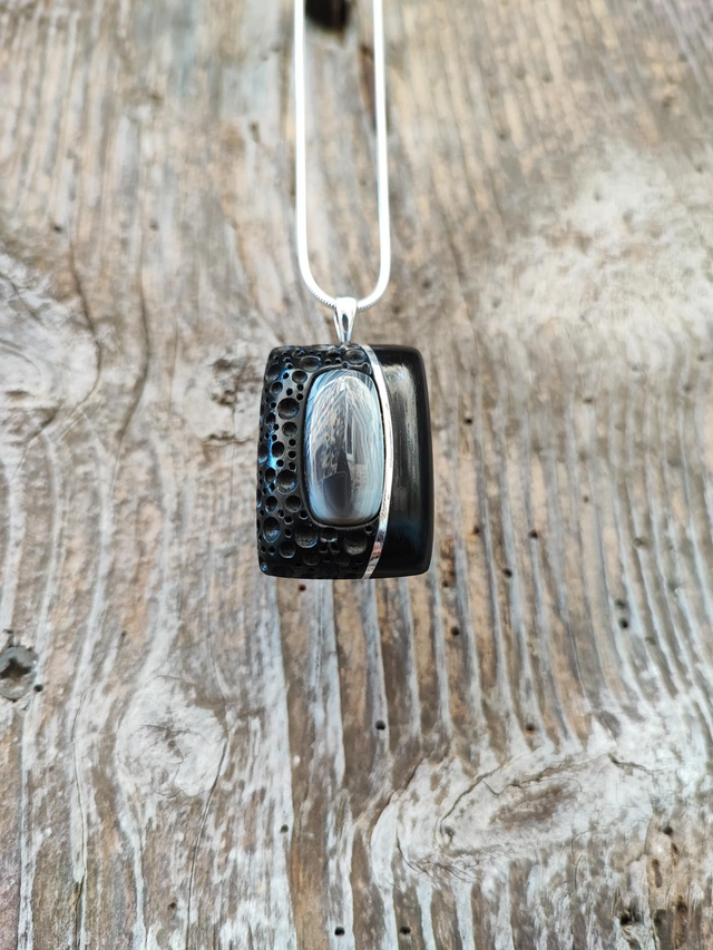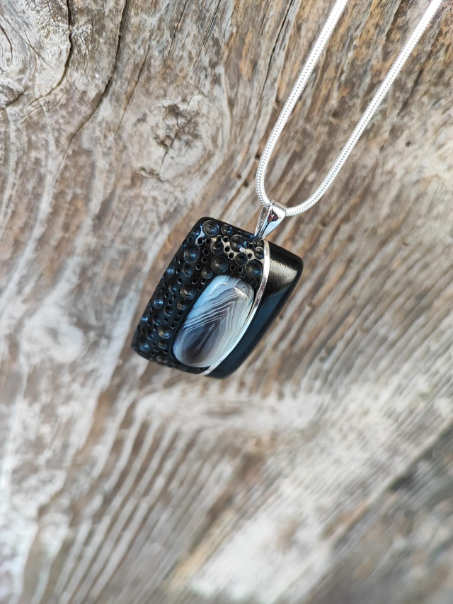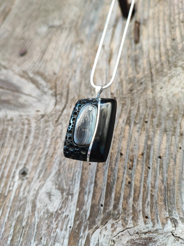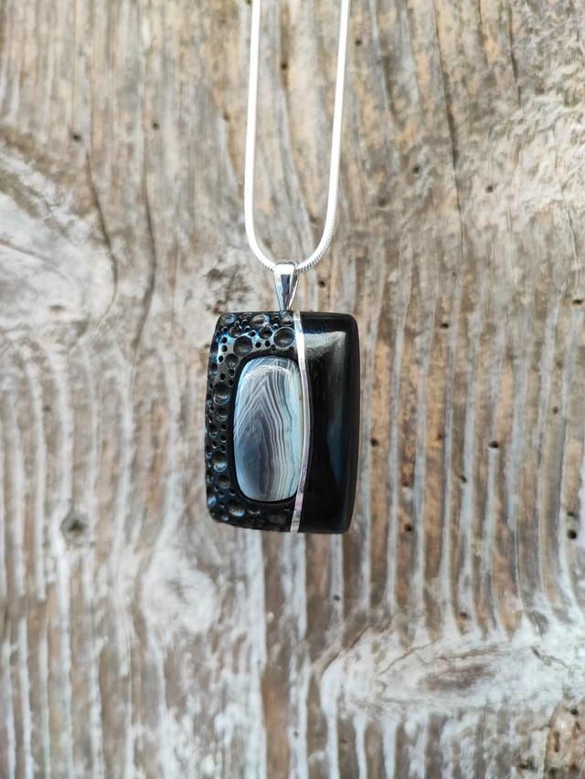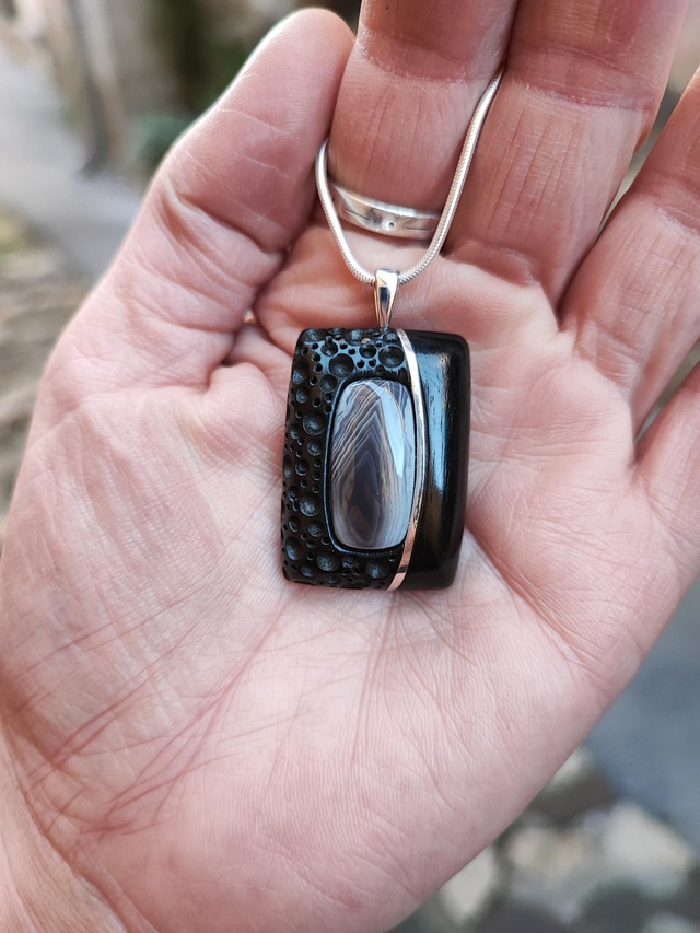 Pendentif en Bois d'Ébène du Gabon, Agate Botswana et Argent