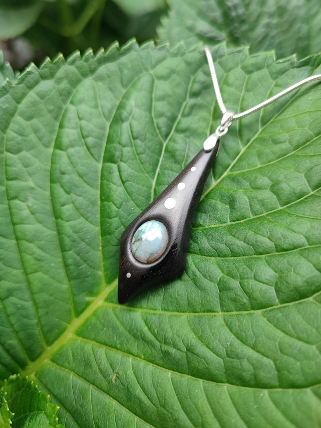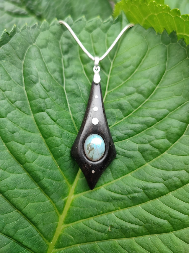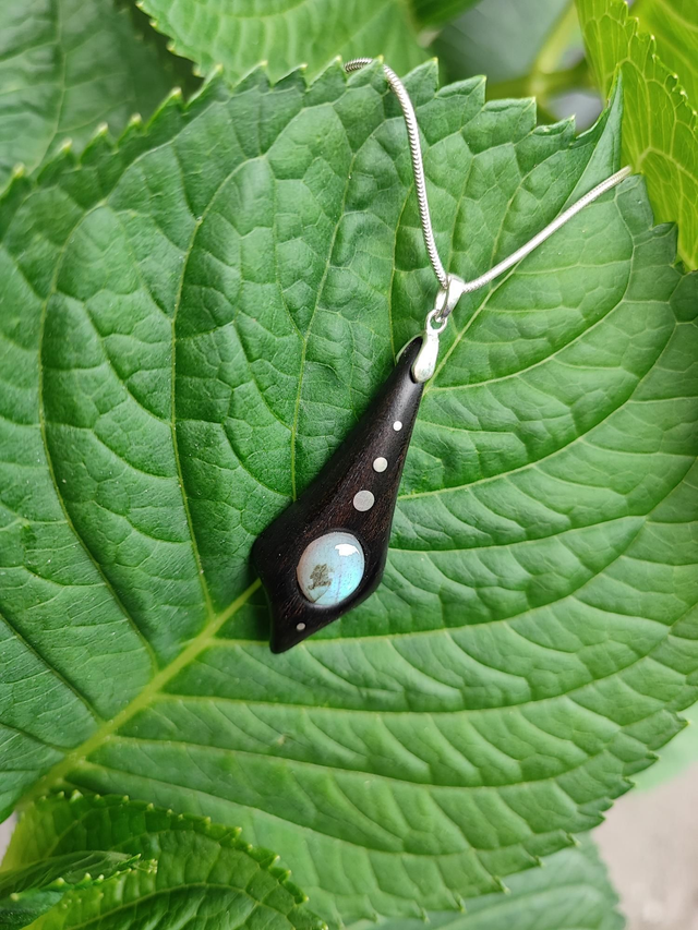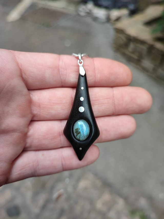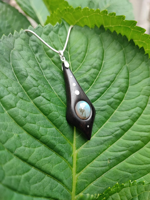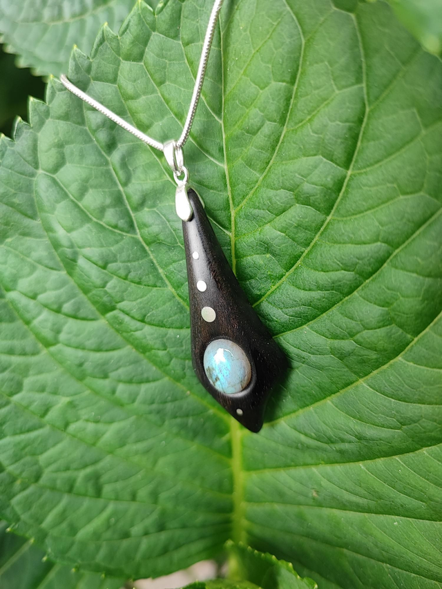 Pendentif en Bois d'Ebène du Gabon, Labradorite et Argent