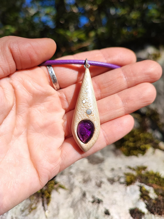 Lumineux et apaisant, ce pendentif allie la douceur du Bois d’Érable Sycomore à la sérénité de l’Améthyste. L’Érable, symbole de pureté et de clarté d’esprit, inspire l’équilibre, la patience et la bienveillance. Il favorise la stabilité intérieure et la confiance dans le mouvement de la vie. L’Améthyste, pierre spirituelle et protectrice, apaise le mental, favorise la méditation et renforce la connexion à soi. L’Argent massif vient sublimer cette alliance en amplifiant la lumière et la paix qu’elle dégage. Ensemble, ils offrent une énergie douce et réconfortante, propice à la sérénité du cœur et de l’esprit.