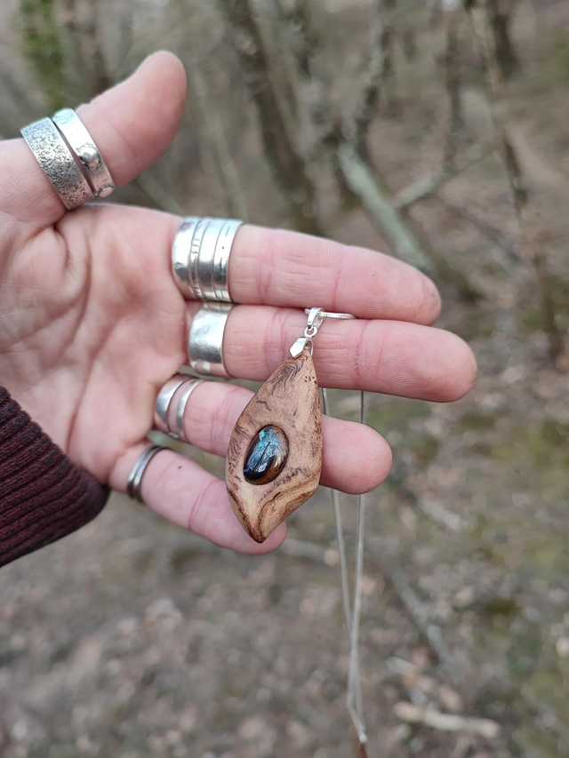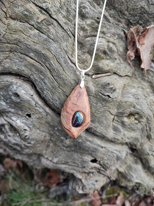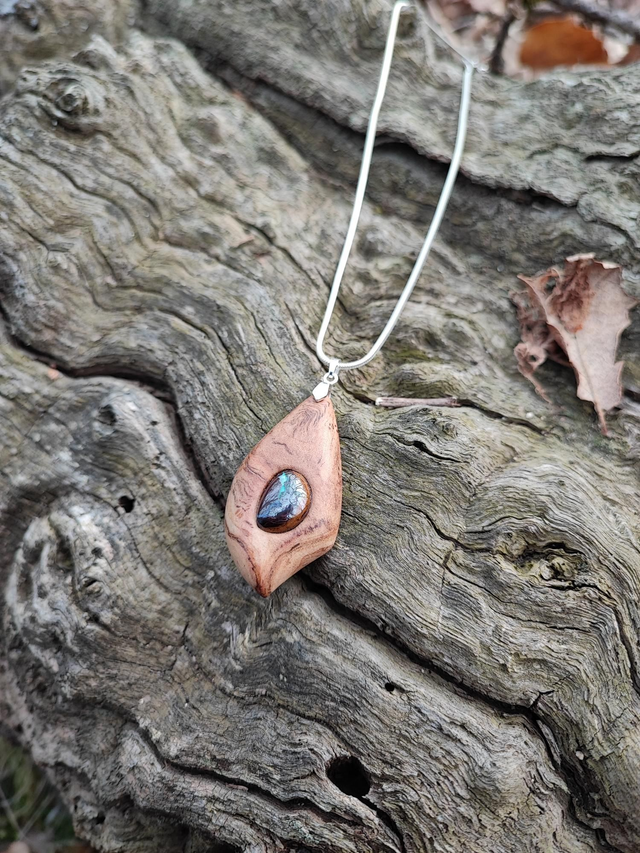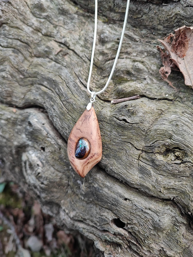 Pendentif en Bois de Ronce d'Olivier, Opale Boulder et Argent