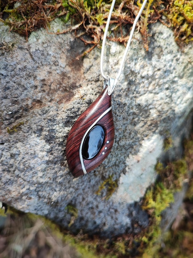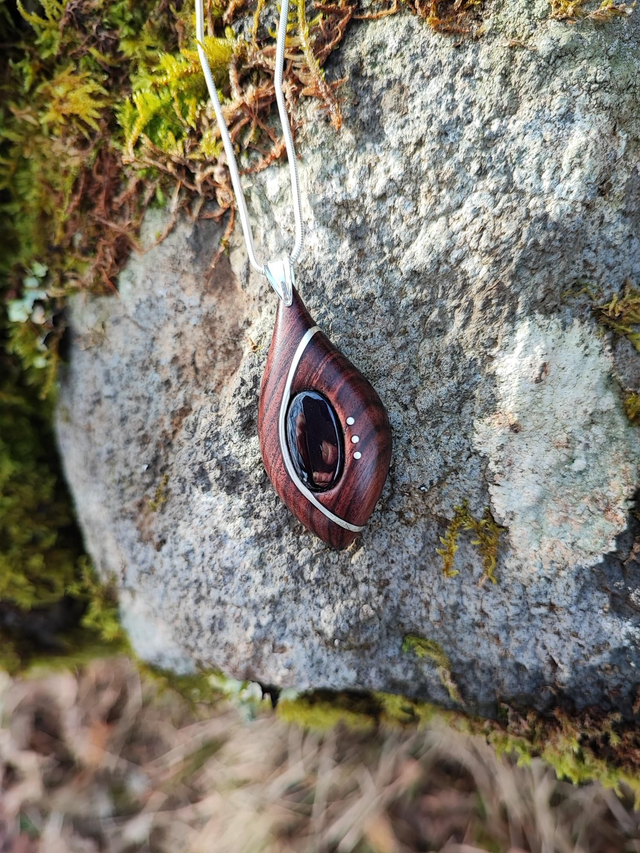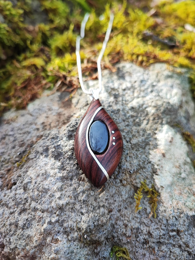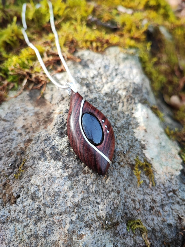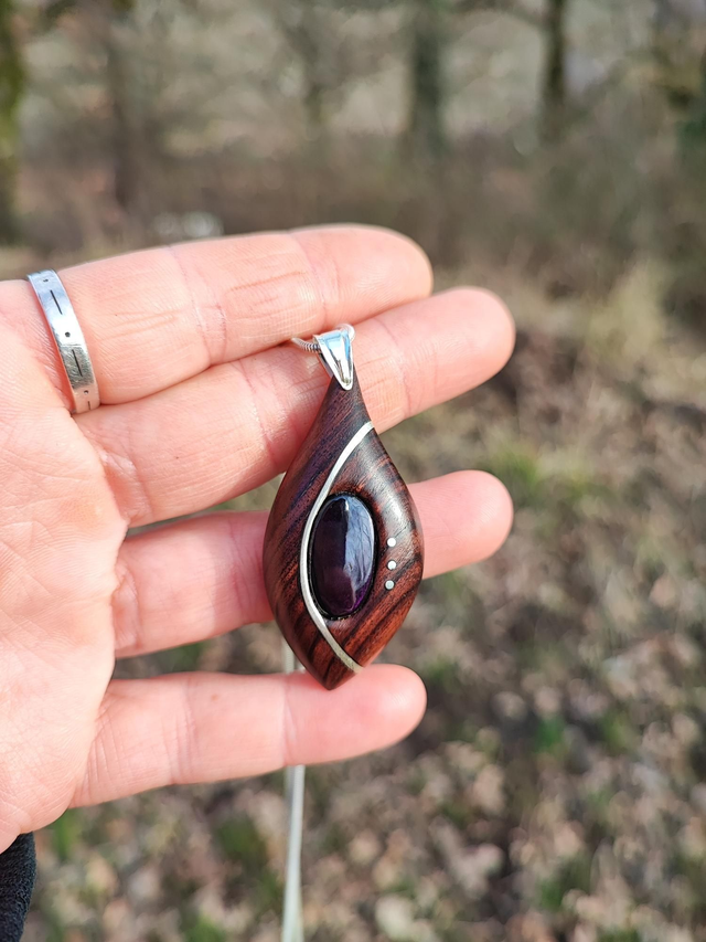 Pendentif en Bois de Violette, Purprite, et Argent