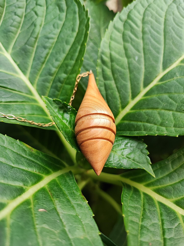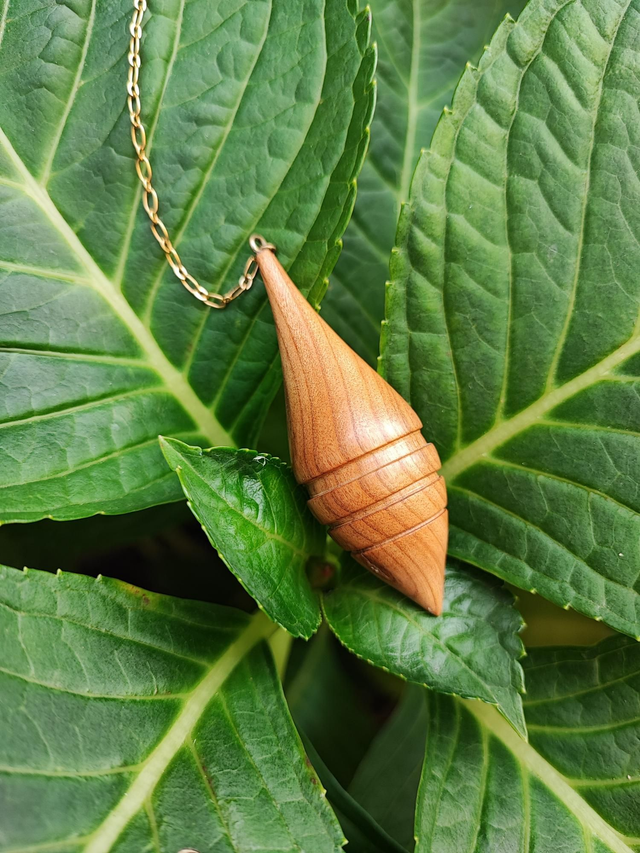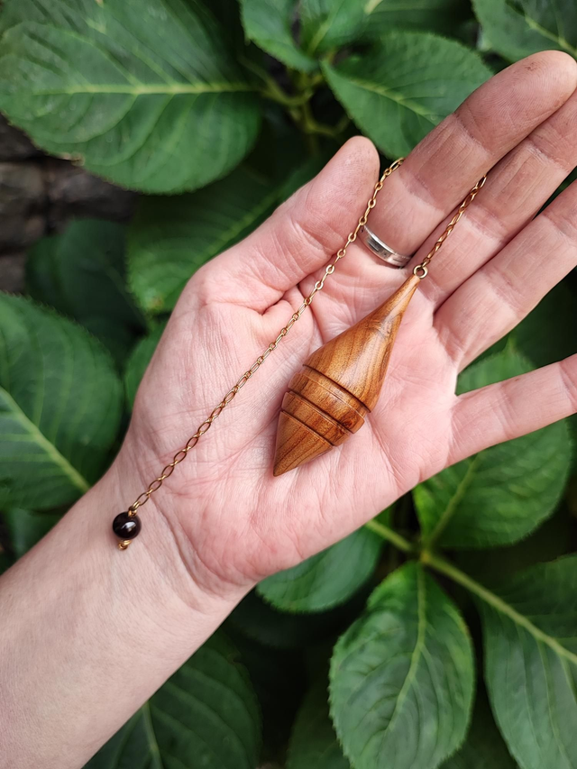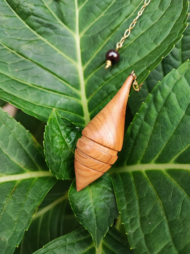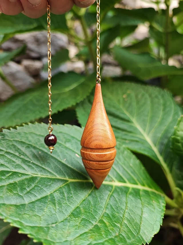 Pendule en Bois de Cerisier, Grenat et Chaînette en Laiton