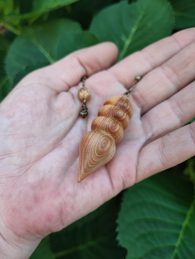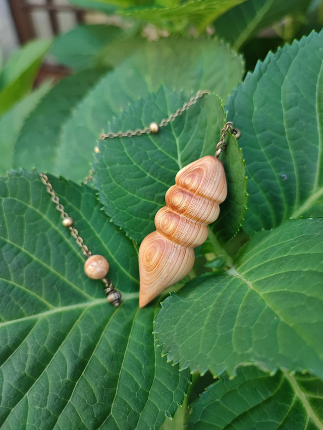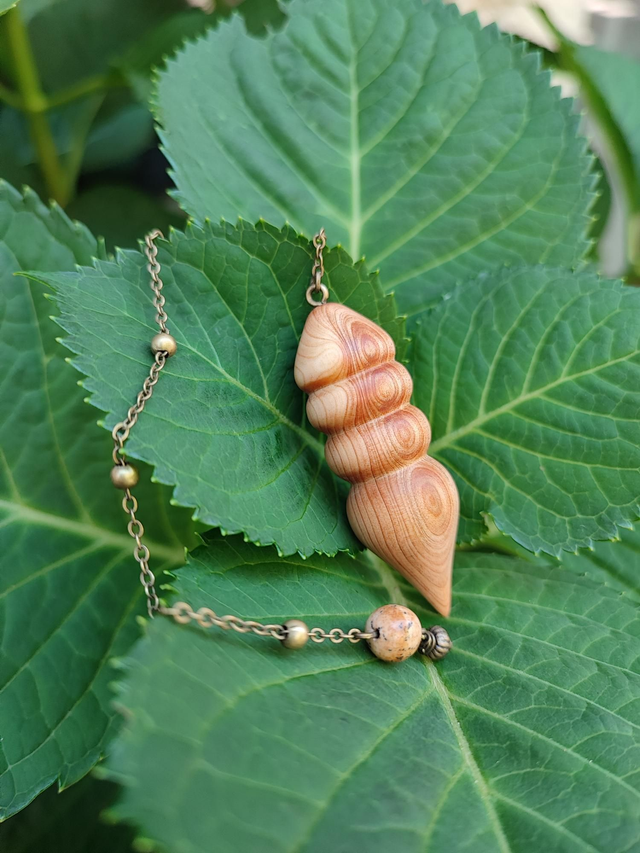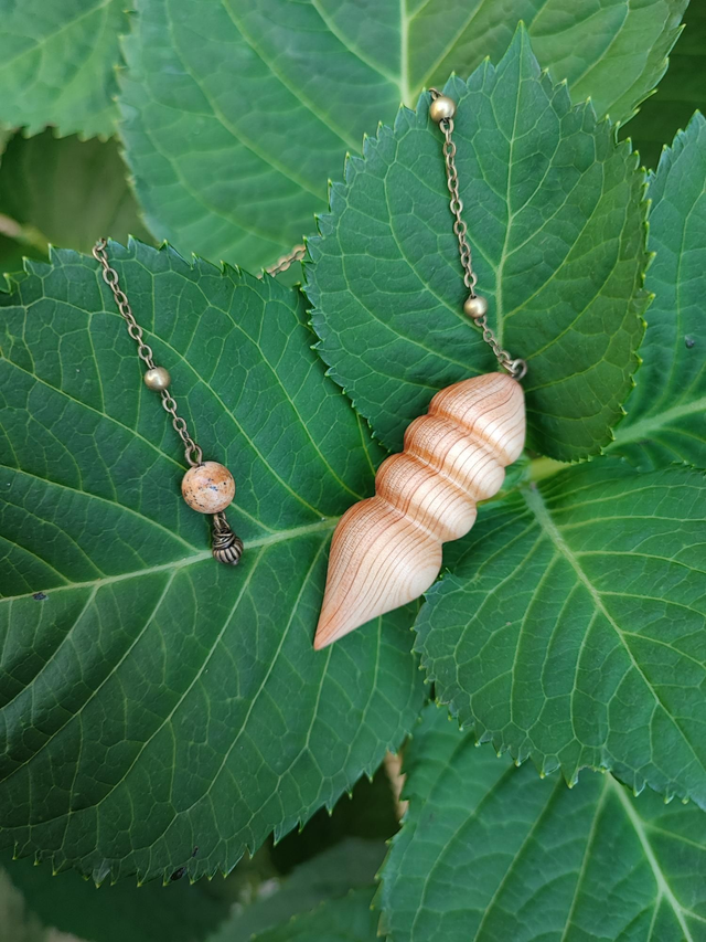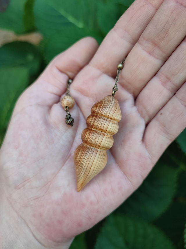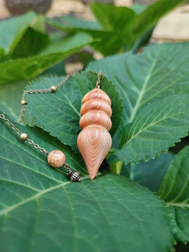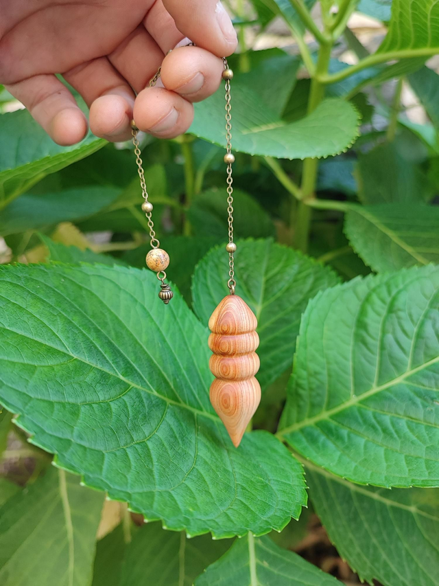 Pendule en Bois de Genévrier Cade d'Ardèche, Jaspe Paysage et Chaînette en Laiton vieilli