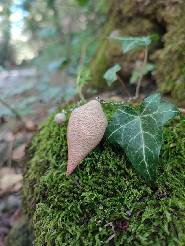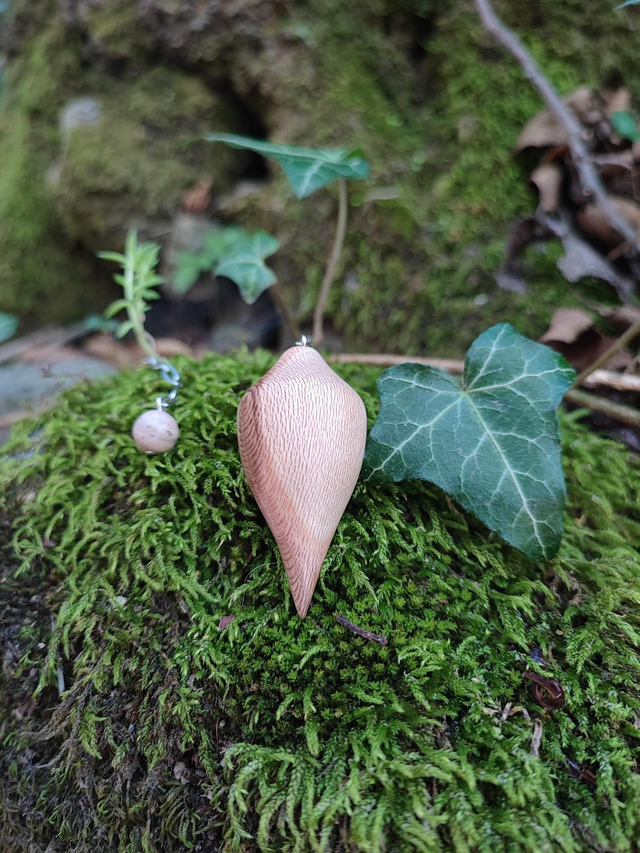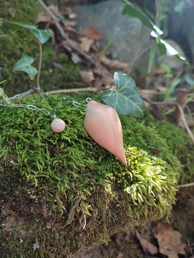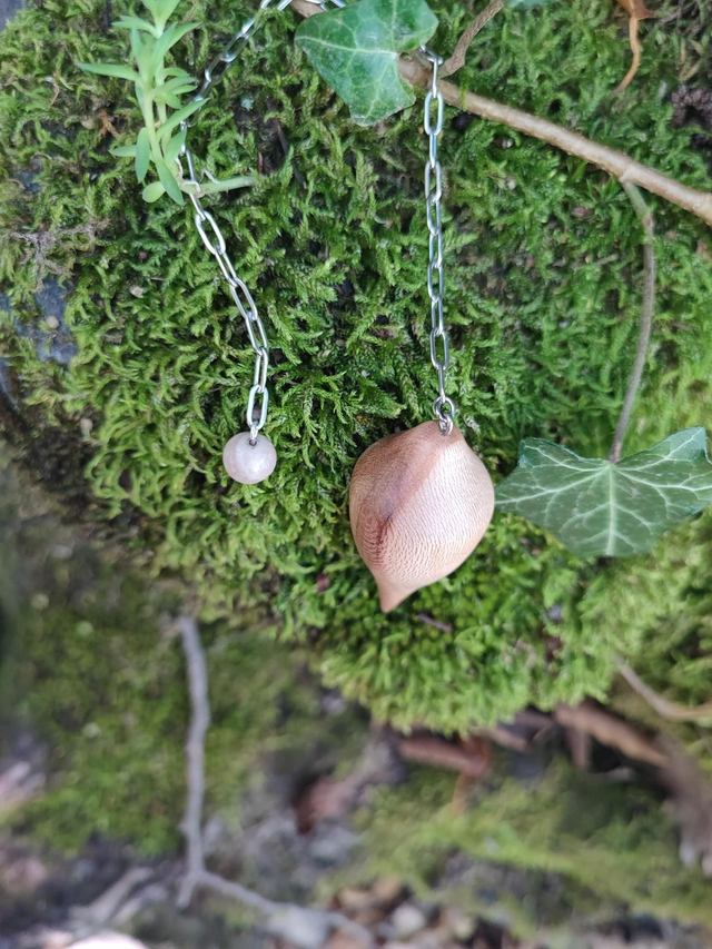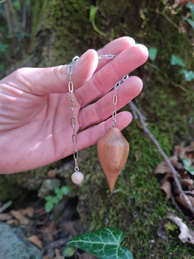 Pendule en Bois de Platane, Rhodonite et Chaînette en Acier Inoxydable