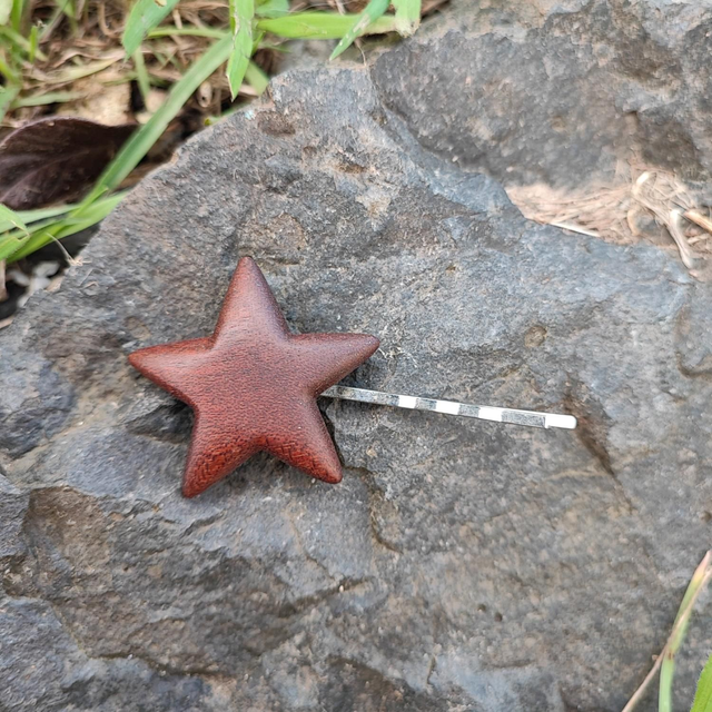 Barrette Étoile en Bois d'Acajou Sapele et Acier inoxydable