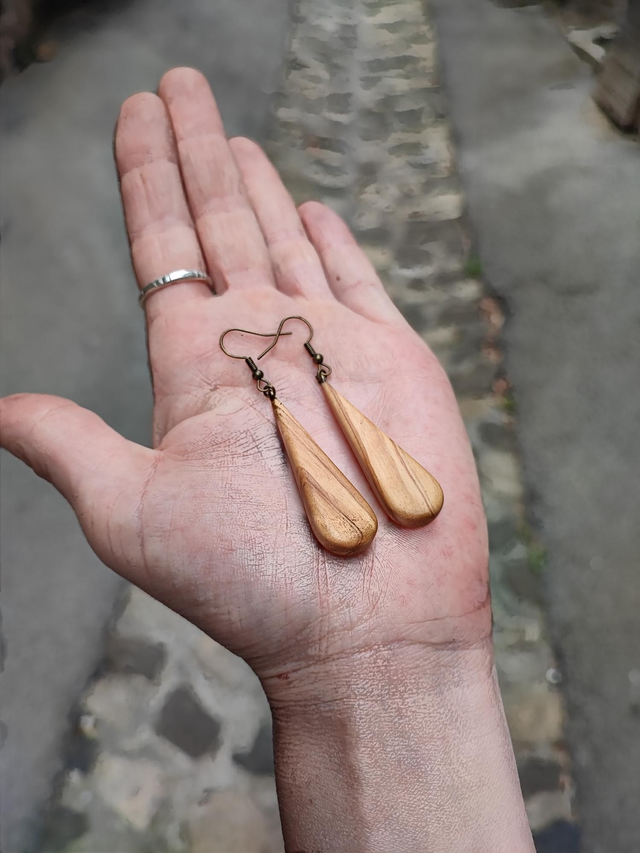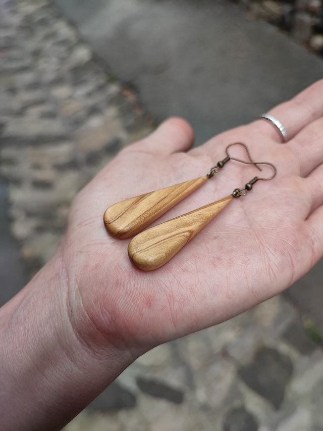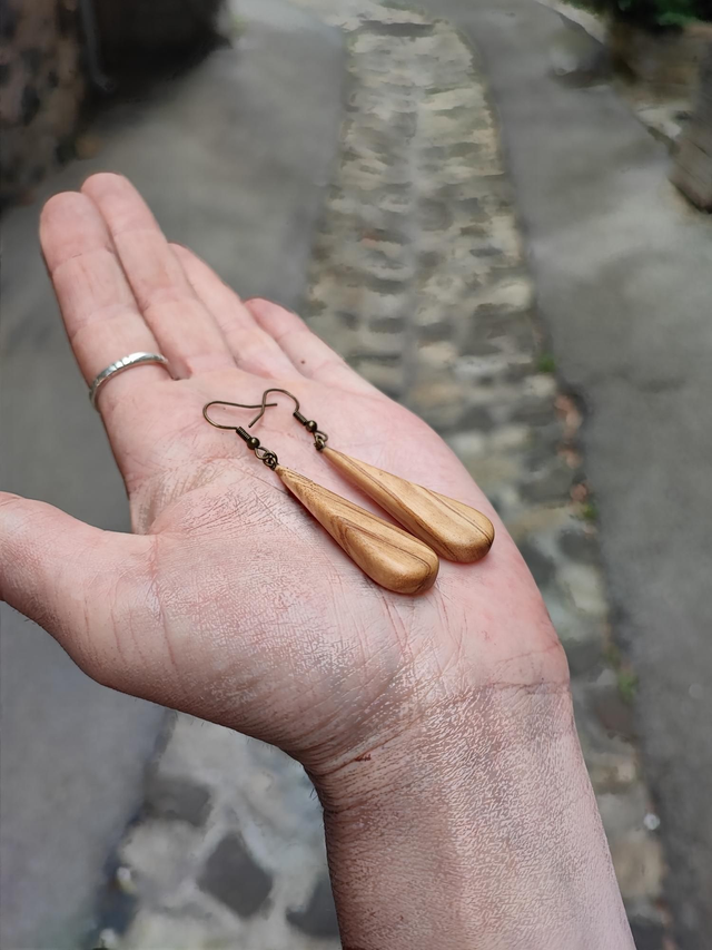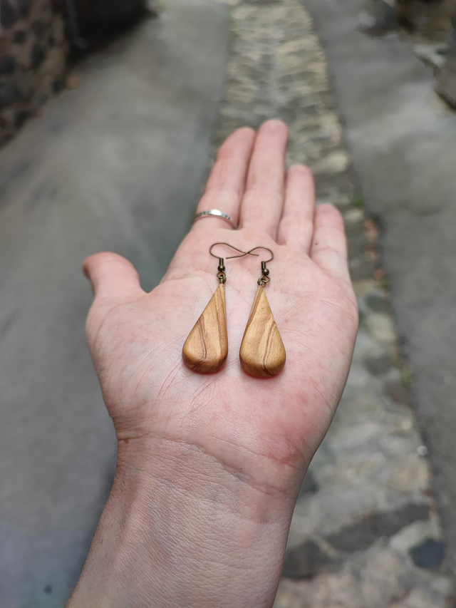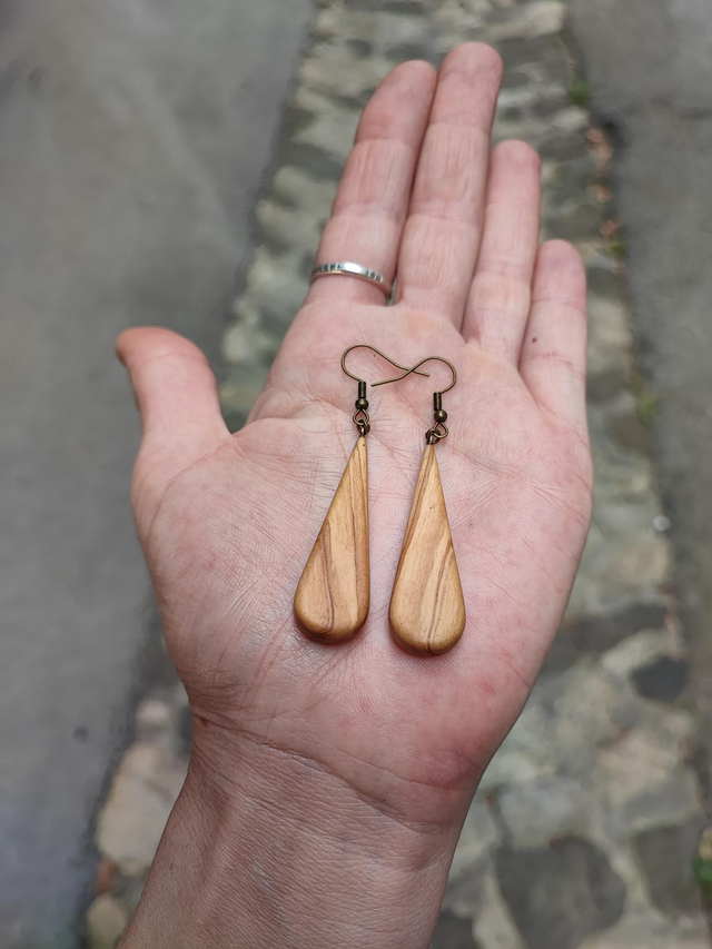 Boucles d'Oreilles en Bois d'Olivier et Laiton Vieilli