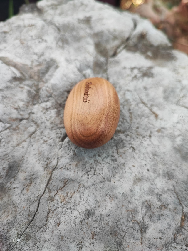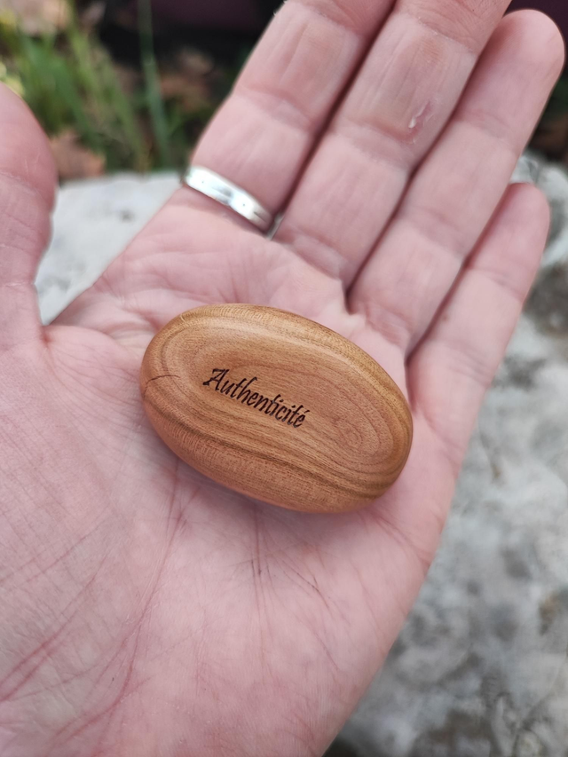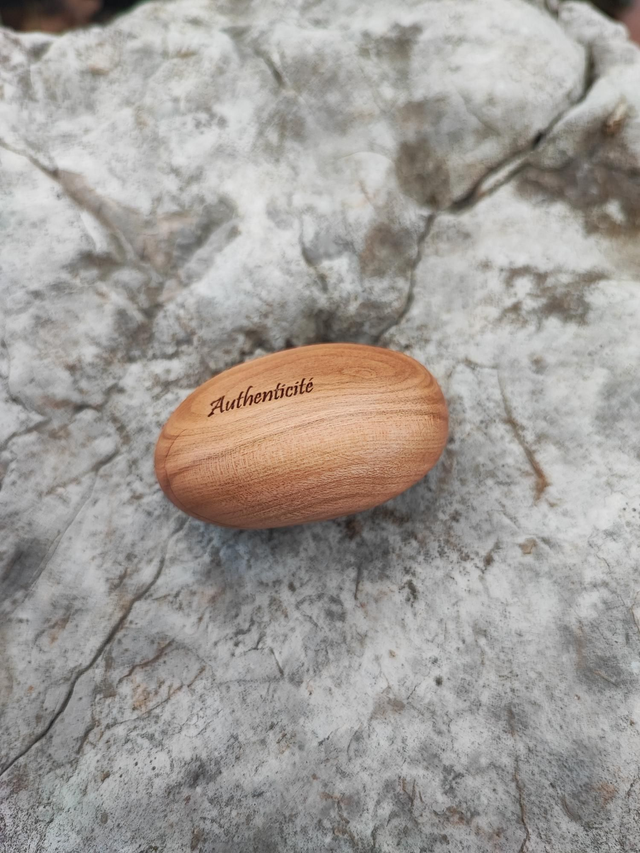 Gravure Laser "Authenticité" (en rapport avec les vertus du bois).