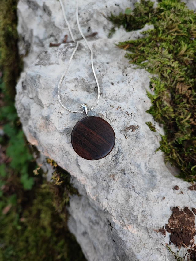 Dimensions pendentif hors bélière : diamètre 2,8 cm, épaisseur 6,5 mm.