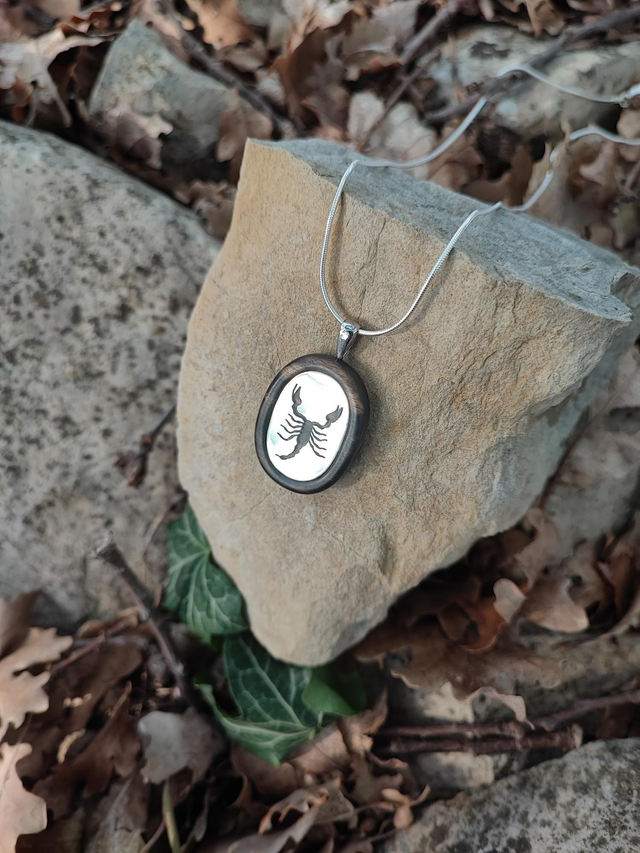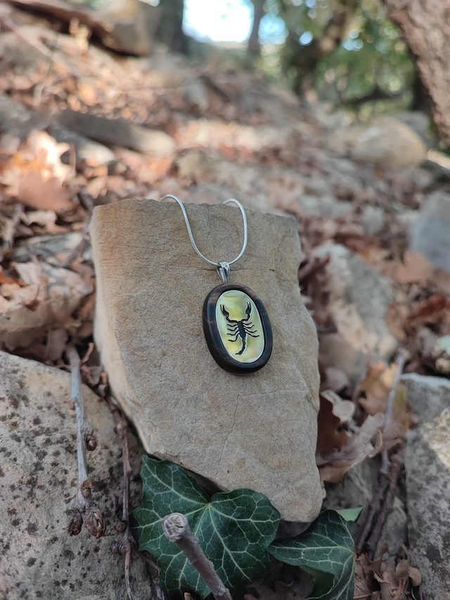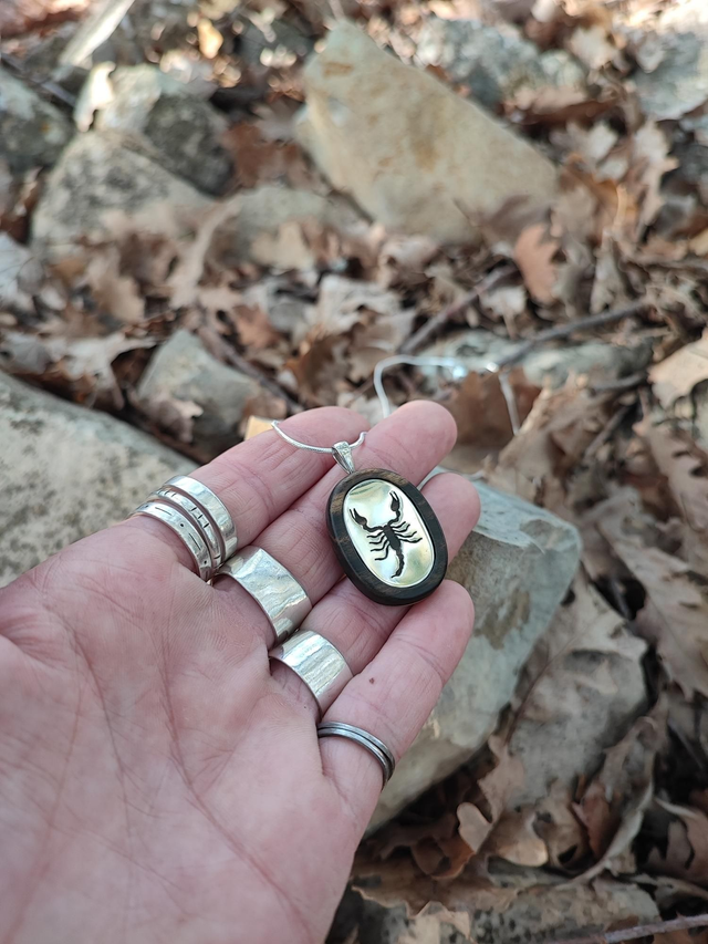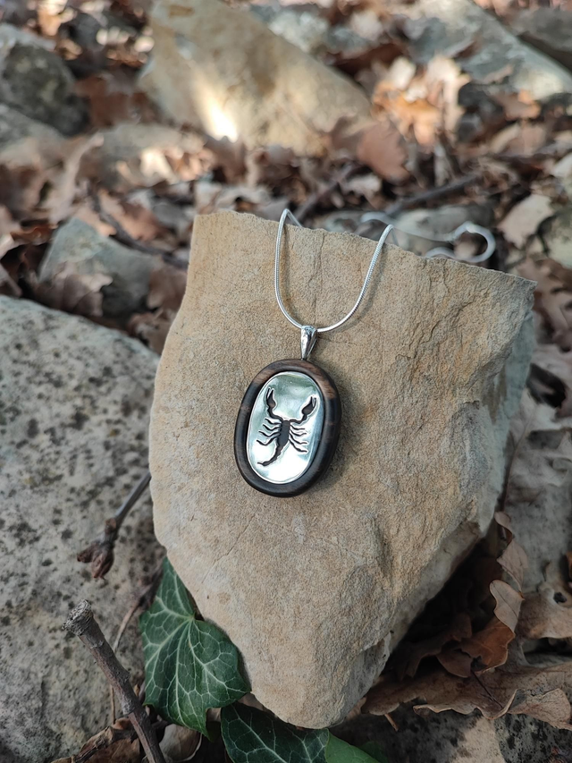 Plaque d'Argent massif ajourée Scorpion (Ajourage réalisé à la main).