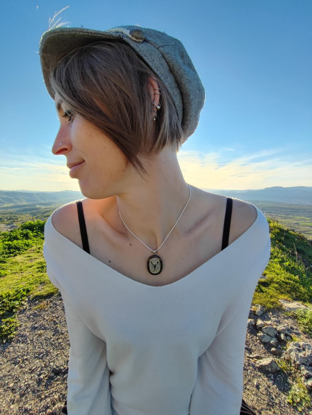 Dimensions pendentif hors bélière : hauteur 3,1 cm par 2,3 cm de largeur, épaisseur 5,5 mm.