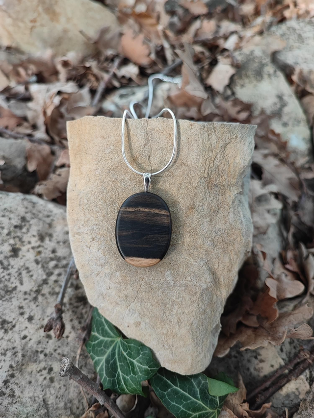 Pendentif en Bois de Hêtre Échauffé stabilisé Vert, Jadéïte Suisse et Argent