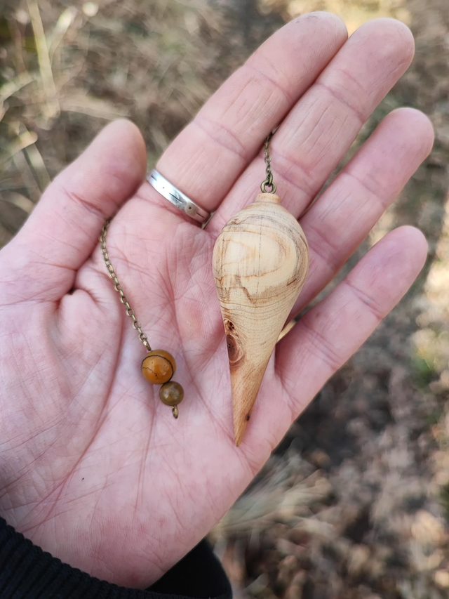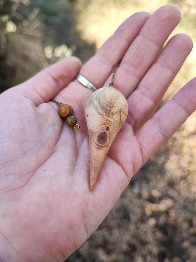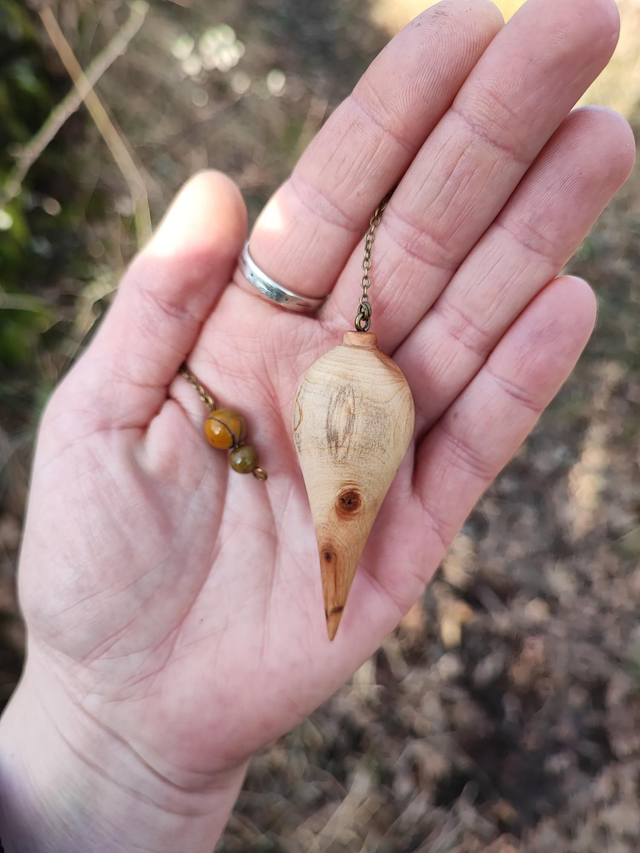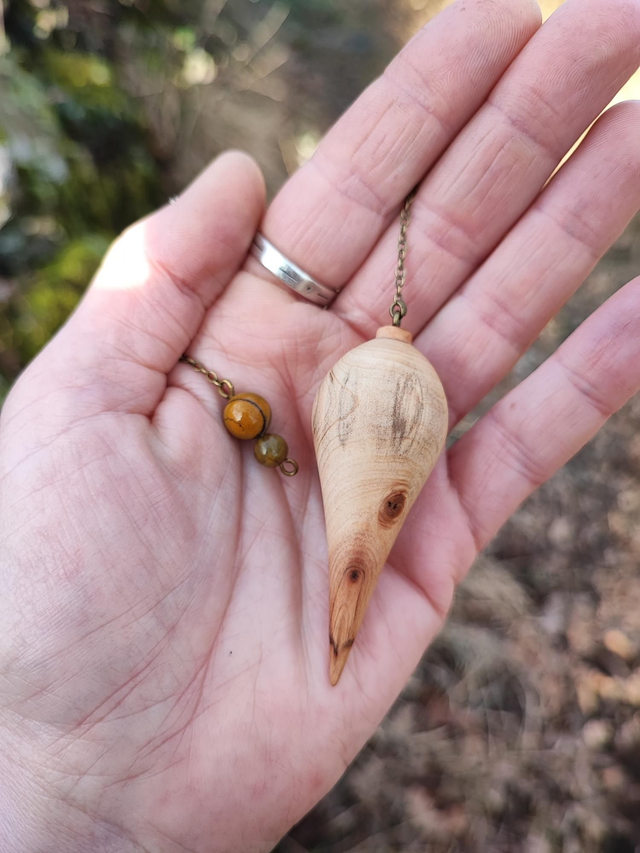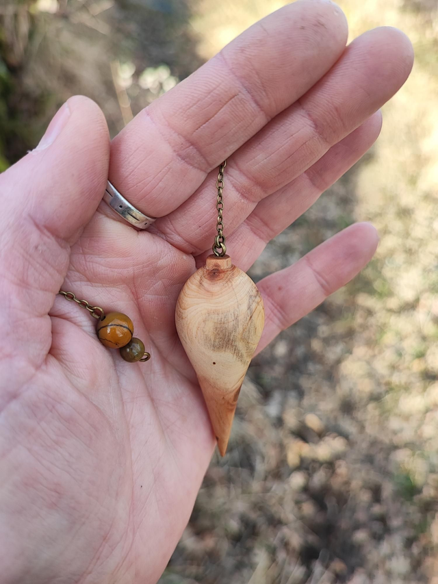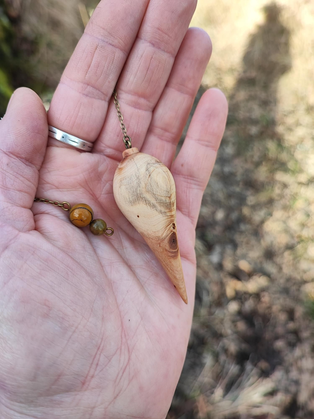 Pendule en Bois de Genévrier Cade d'Ardèche et Chaînette en Laiton vieilli