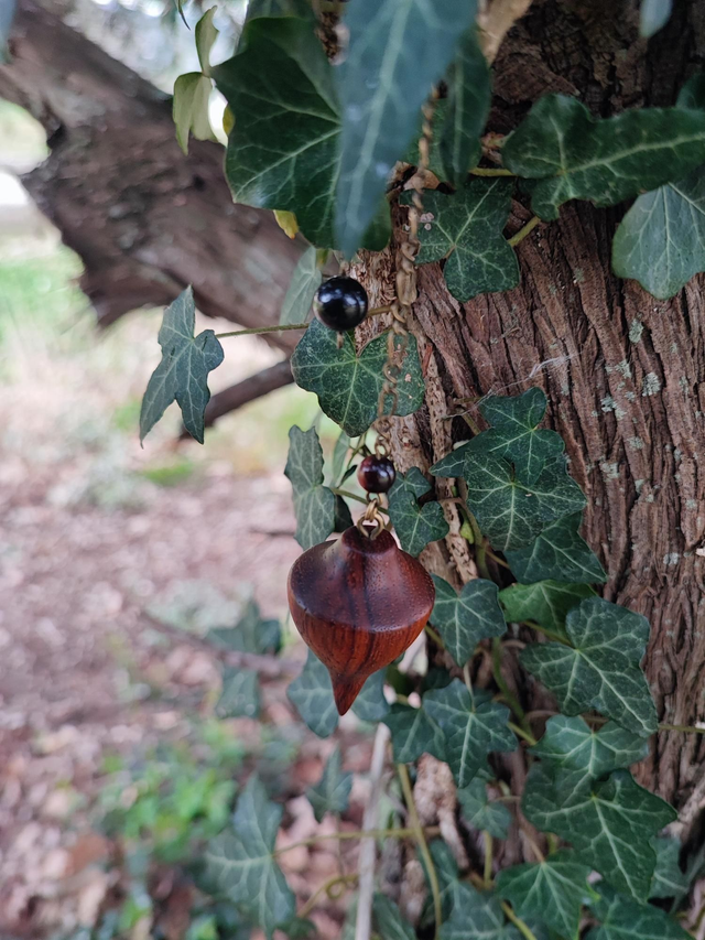 Pendule en Bois de Madré Cacao et Chaînette en Laiton vieilli